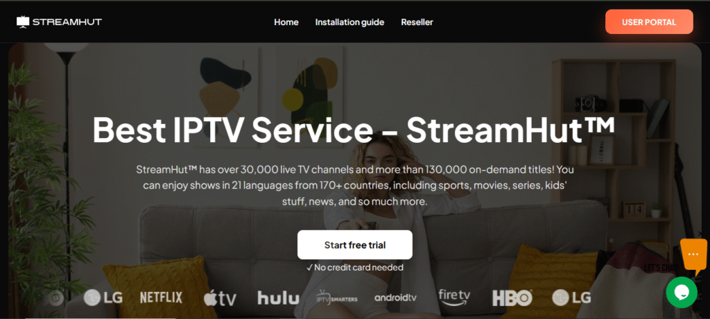 StreamHut.tv is an IPTV streaming service that provides access to a very large catalog of live TV channels and on-demand content, including movies, series, and international entertainment. It is known for offering high-quality streaming in HD, Full HD, and 4K, along with features like EPG, multi-device support, and a 24-hour free trial.