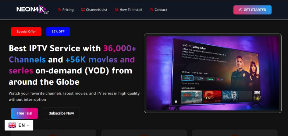 Neon4KTV is an IPTV streaming service that delivers live television channels, sports, movies, and on-demand content through an internet connection. Unlike traditional cable or satellite TV, Neon4KTV uses internet protocol technology to stream content directly to compatible devices such as Smart TVs, Android devices, Firestick, and IPTV player apps.